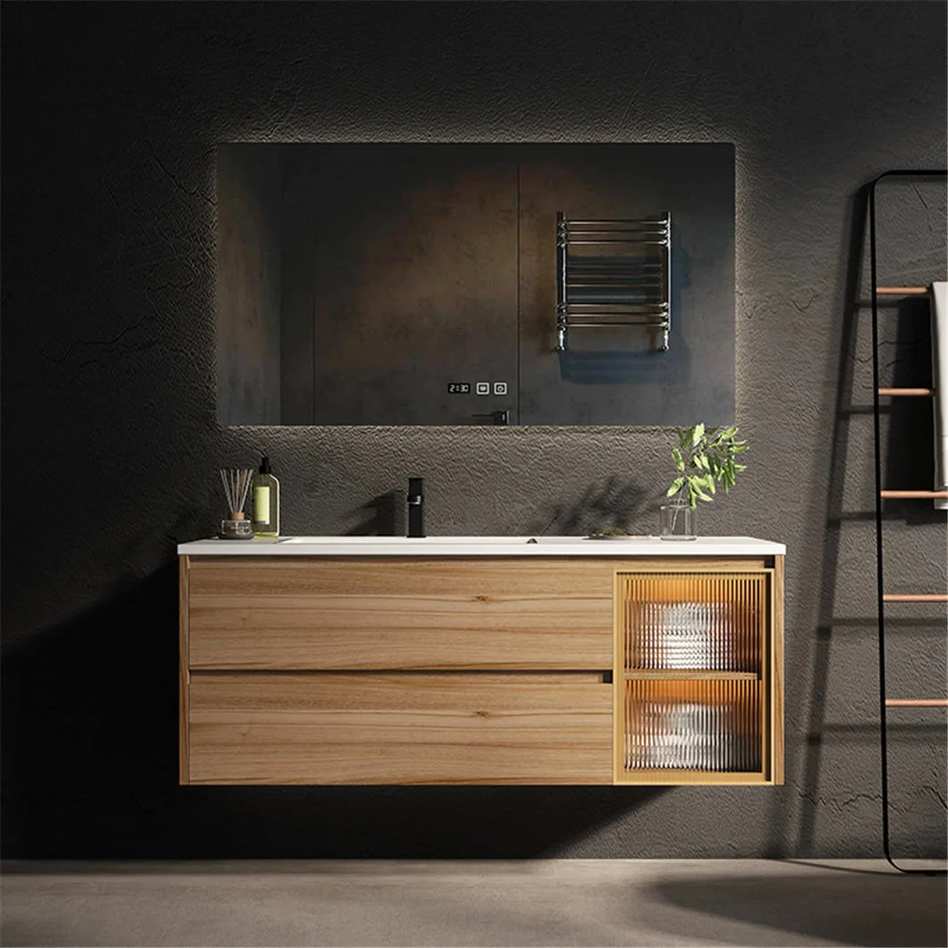 OEM Nordic Modern Style Bathroom Lava Basin Grey Single Sink Wood Bathroom Cabinet Combination with LED Mirror Cabinet